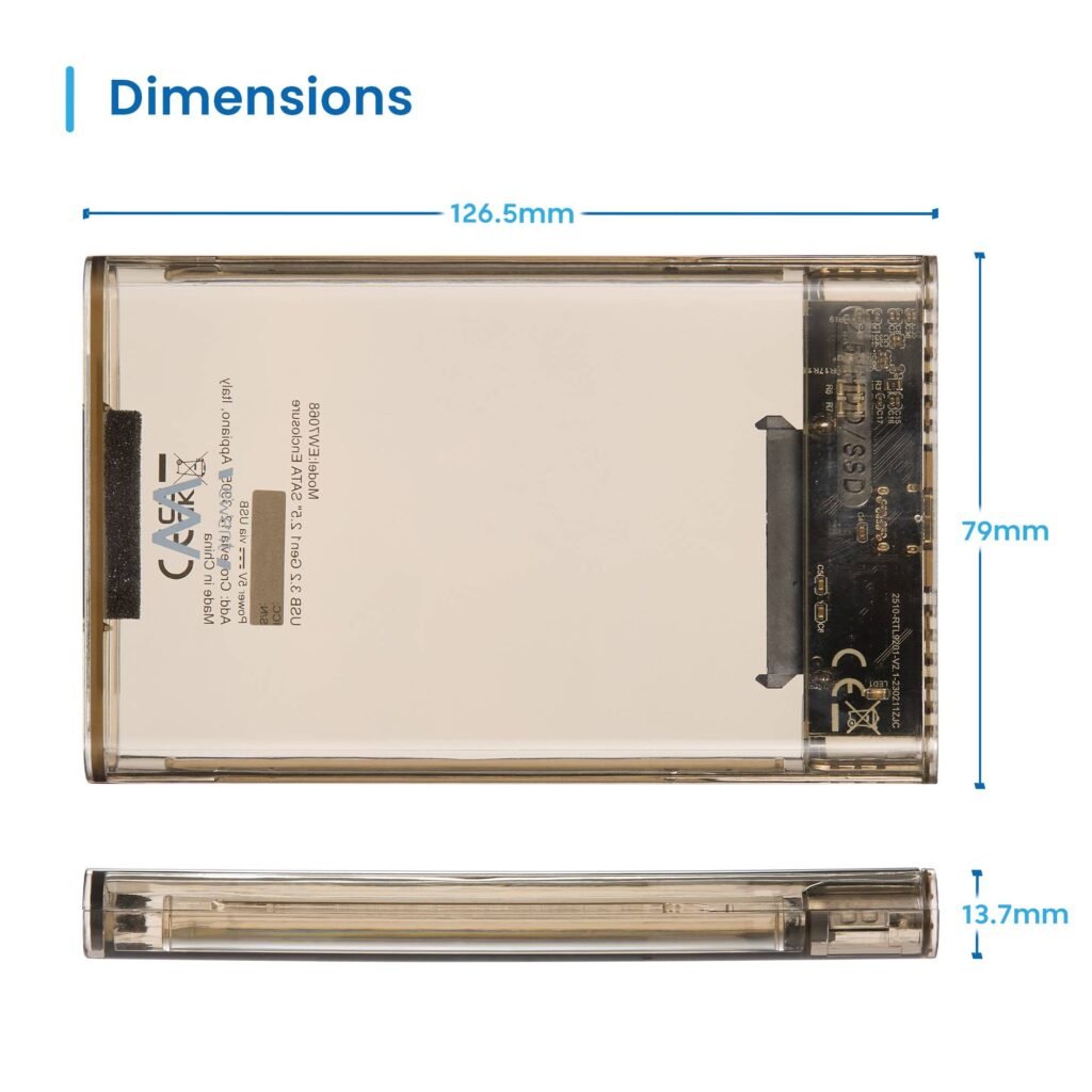 Caixa Externa 2.5″ Ewent EW7068 USB-C 3.2 Gen1 (USB 3.0) HDD/SSD Transparente Screwless