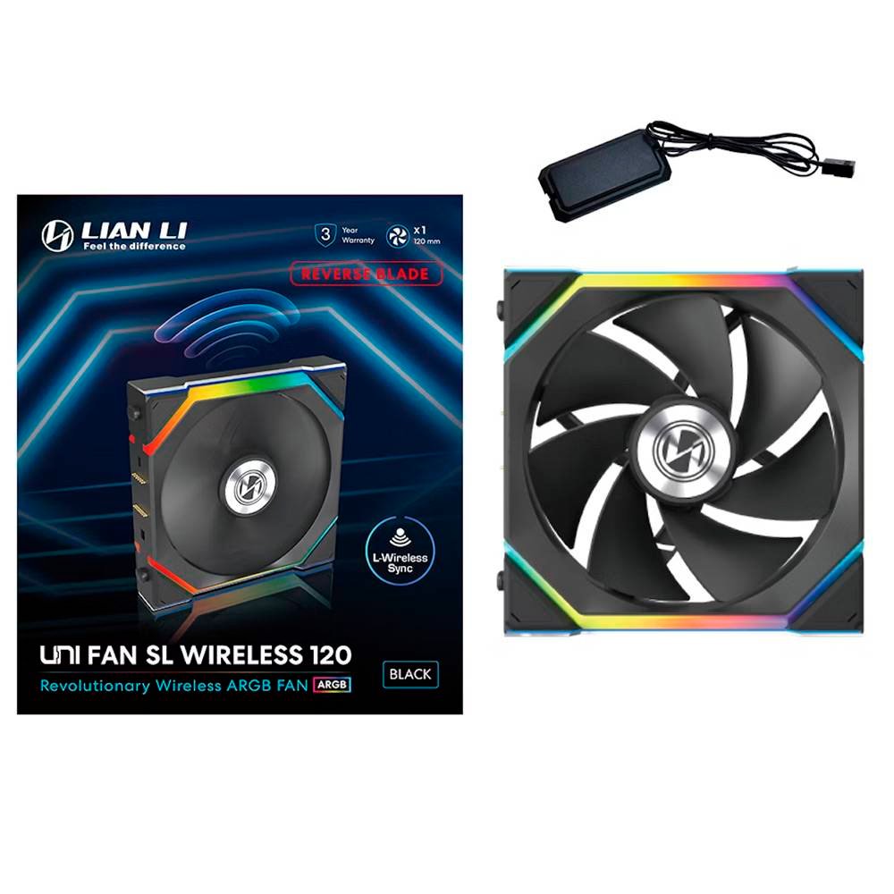 Ventoinha 120mm Lian Li Uni Fan SL120 Infinity Wireless RGB Reverse Blade 4 Pinos PWM Preta