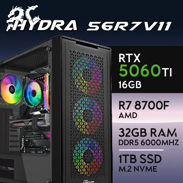 PC Gaming HYDRA-56R7V11 – R7 8700F | RTX5060Ti 16GB | 32GB | M.2 1TB
