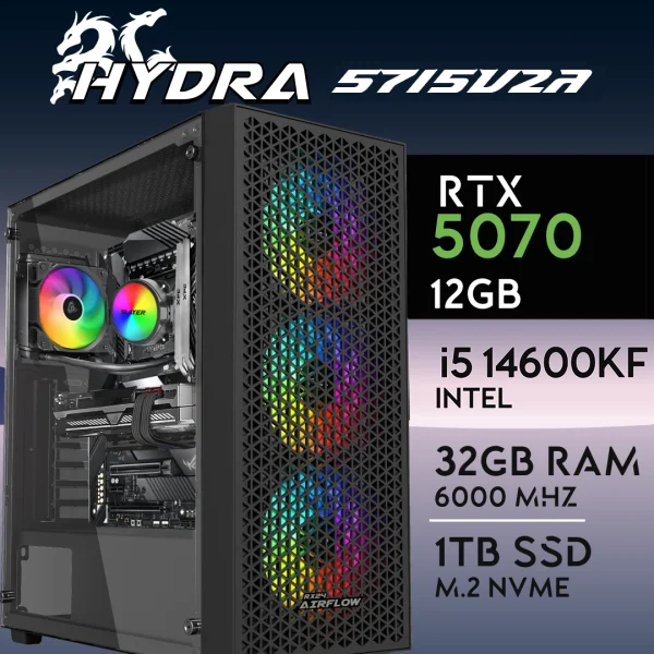 PC Gaming HYDRA-57I5V2A – I5 14600KF | RTX5070 12GB | 32GB | M.2 1TB