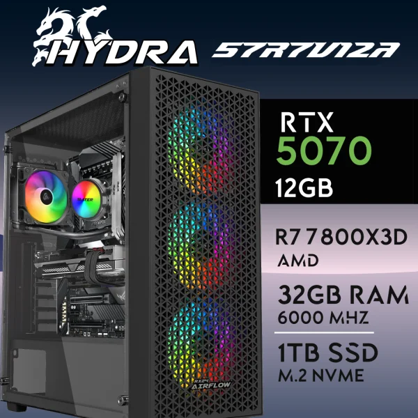 PC Gaming HYDRA-57R7V5 – R7 5700X3D | RTX5070 12GB | 32GB | M.2 1TB