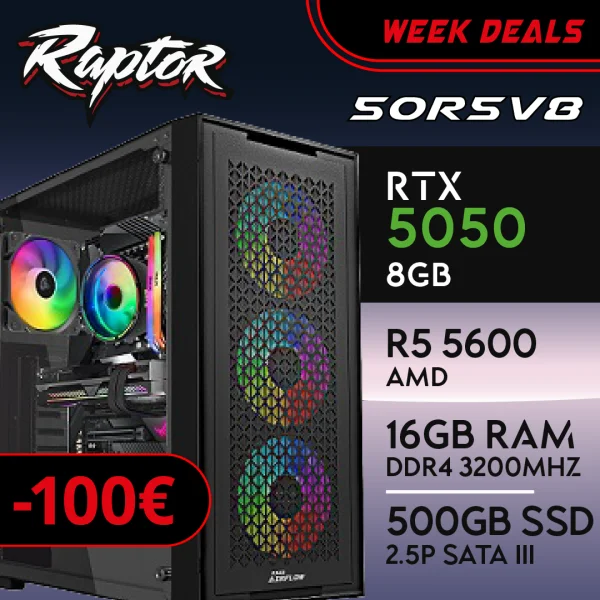 PC Gaming RAPTOR-55R7V1A – R7 5700X | RTX5050 8GB | 16GB | SSD 1TB