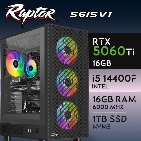 PC Gaming RAPTOR-56I5V1 – I5 14400F | RTX5060Ti 16GB | 16GB | M.2 1TB