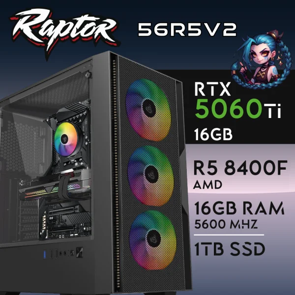 PC Gaming RAPTOR-56R5V2 – R5 8400F | RTX5060Ti 16GB | 16GB | M.2 1TB