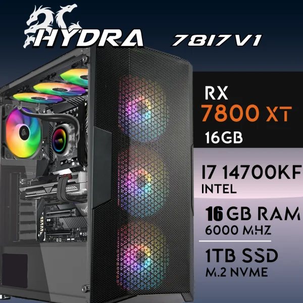 PC Gaming HYDRA-78I7V1 – i7 14700KF | RX7800XT 16GB | 16GB | M.2 1TB