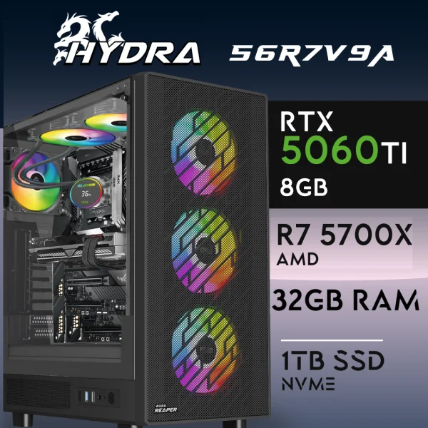 PC Gaming HYDRA-56R7V9A – R7 5700X | RTX5060Ti 8GB | 32GB | M.2 1TB