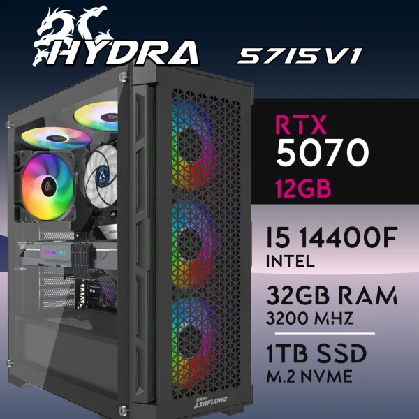 PC Gaming HYDRA-57I5V1 – I5 14400F | RTX5070 12GB | 32GB | M.2 1TB