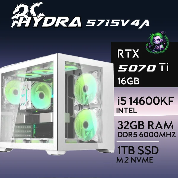 PC Gaming HYDRA-57I5V4A – I5 14600KF | RTX5070Ti 16GB | 32GB | M.2 1TB