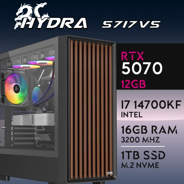 PC Gaming HYDRA-57I7V5 – I7 14700KF | RTX5070 12GB | 16GB | M.2 1TB