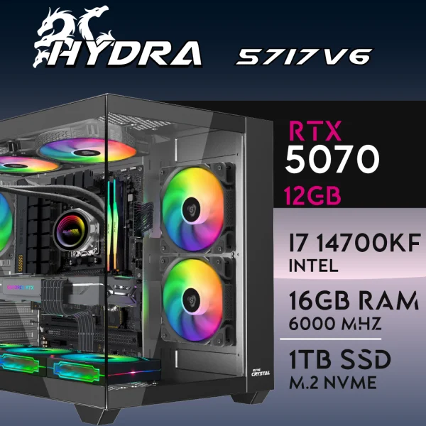 PC Gaming HYDRA-57I7V6 – I7 14700KF | RTX5070 12GB | 16GB | M.2 1TB