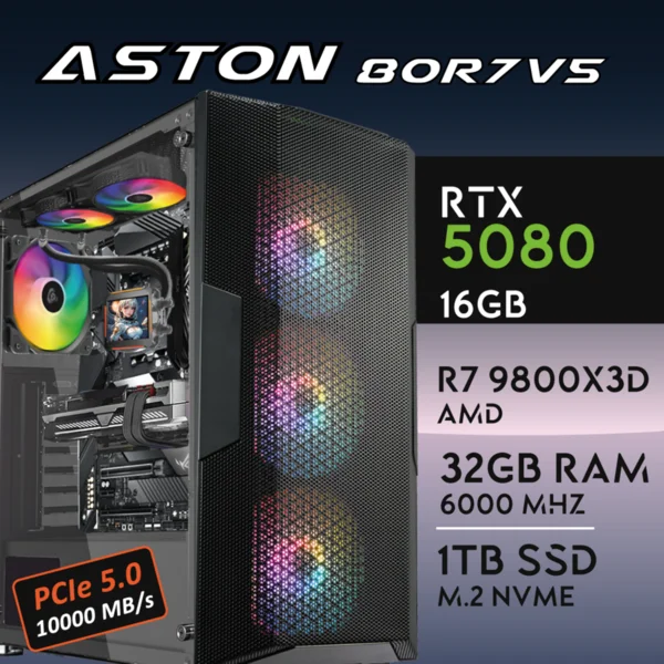 PC Gaming ASTON-80R7V5 – R7 9800X3D | RTX5080 16GB | 32GB | M.2 1TB