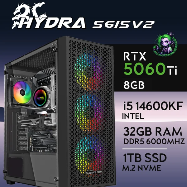 PC Gaming HYDRA-56I5V2 – I5 14600KF | RTX5060Ti 8GB | 32GB | M.2 1TB