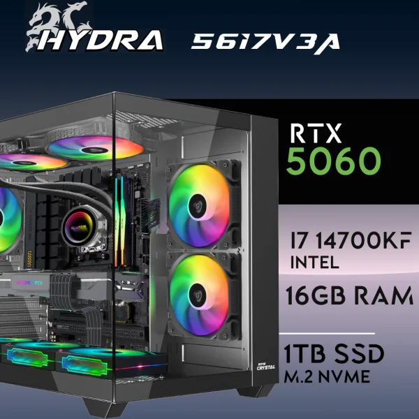 PC Gaming HYDRA-56I7V2 – I7 14700KF | RTX5060 8GB | 16GB | M.2 1TB