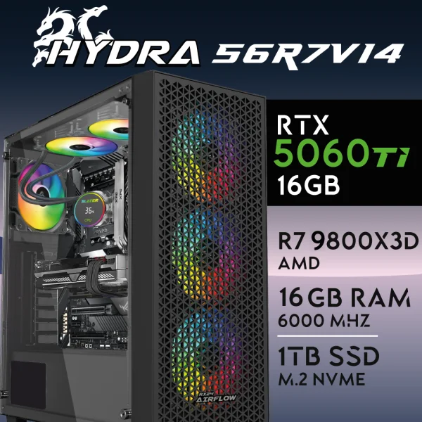 PC Gaming HYDRA-56R7V14 – R7 9800X3D | RTX5060Ti 16GB | 16GB | M.2 1TB