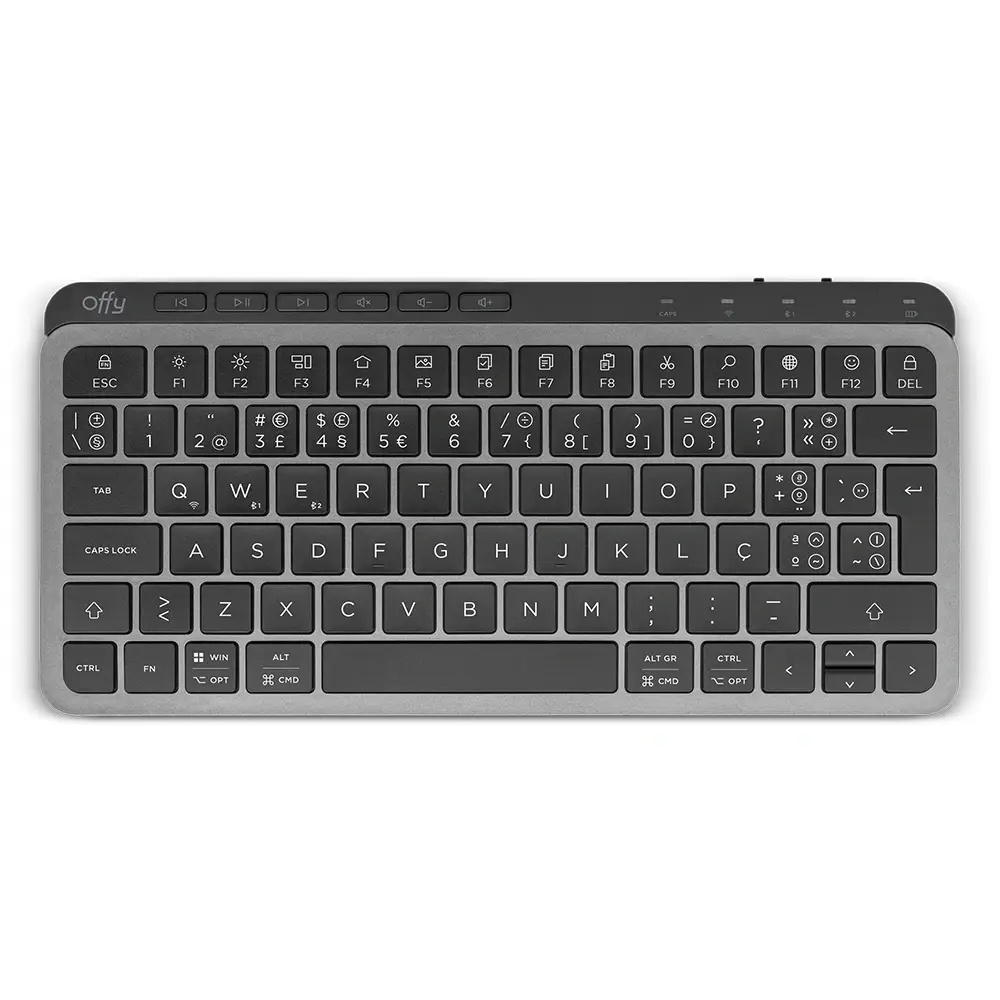 Teclado Offy Flexi Wireless RF 2.4GHz + Bluetooth 5.1 Multi-Device PT Cinzento