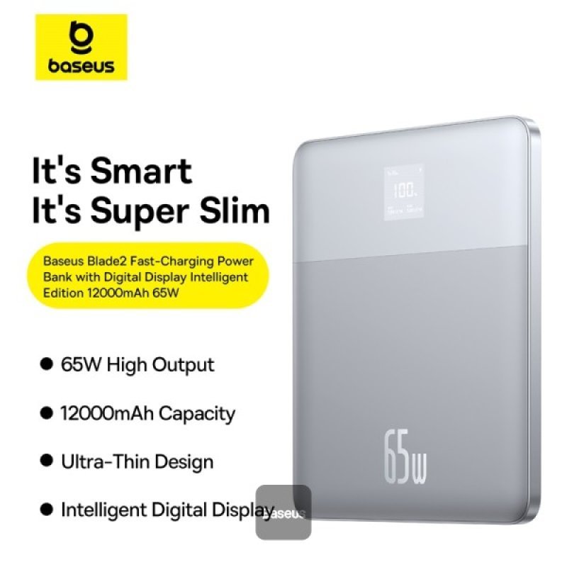 Power Bank Baseus Blade2 12000mAh Silver 65W USB Type-C a Type-C 100W (20V/5A)