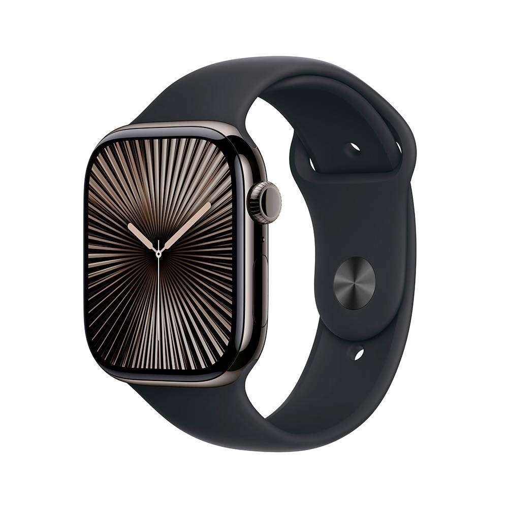 Apple Watch Series 10 GPS + Cellular 46mm Titânio Ardósia c/ Bracelete Desportiva Preta – Medium/Large