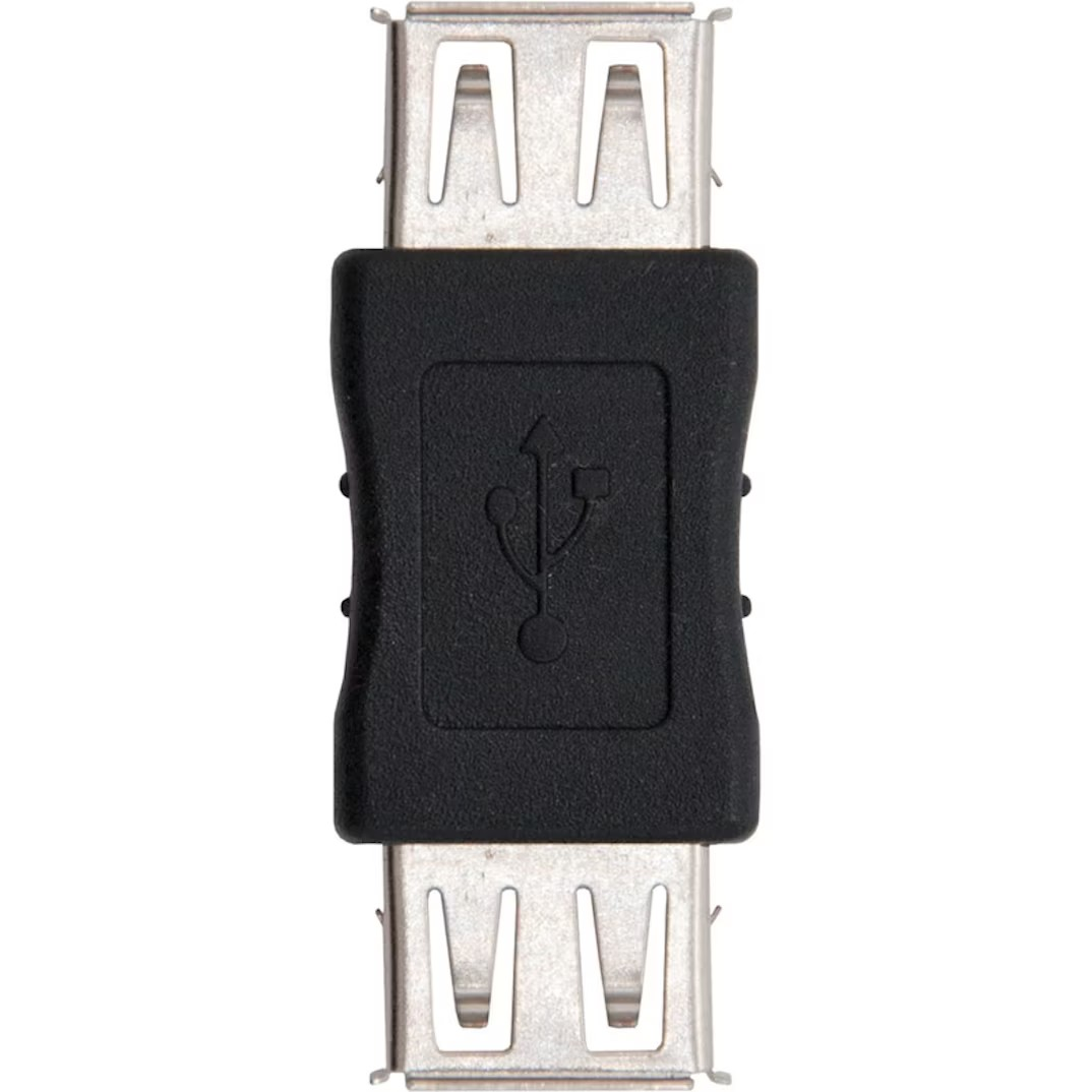 Adaptador USB 2.0 com conector tipo A fêmea em ambas extremidades. Utilizado para unir dois cabos USB com conector tipo A macho ou para converter um conector USB tipo A macho para tipo A fêmea.