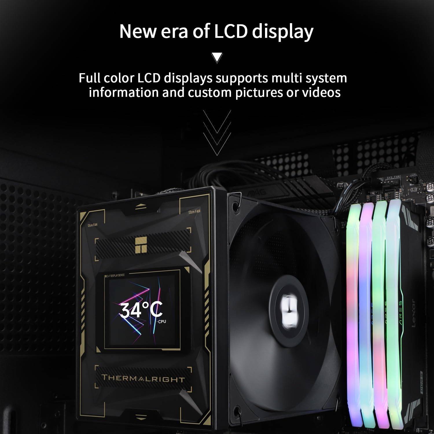 O LCD integrado de 2.4 polegadas oferece aos utilizadores uma monitorização em tempo real dos dados de desempenho do sistema, como frequências de relógio, temperaturas ou mais temas personalizados.