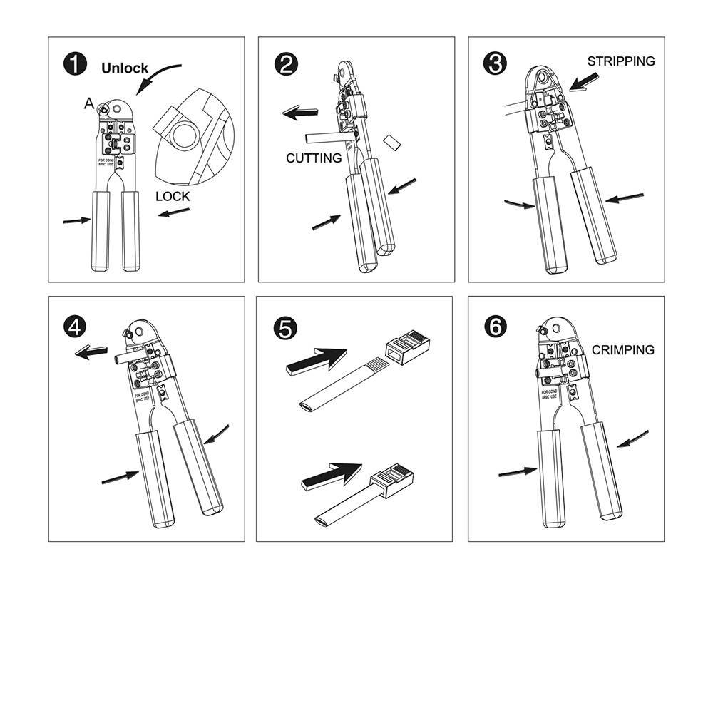 O alicate multifunções Ewent EW9005 extrai e corta o cabo, e fixa os conectores do cabo.