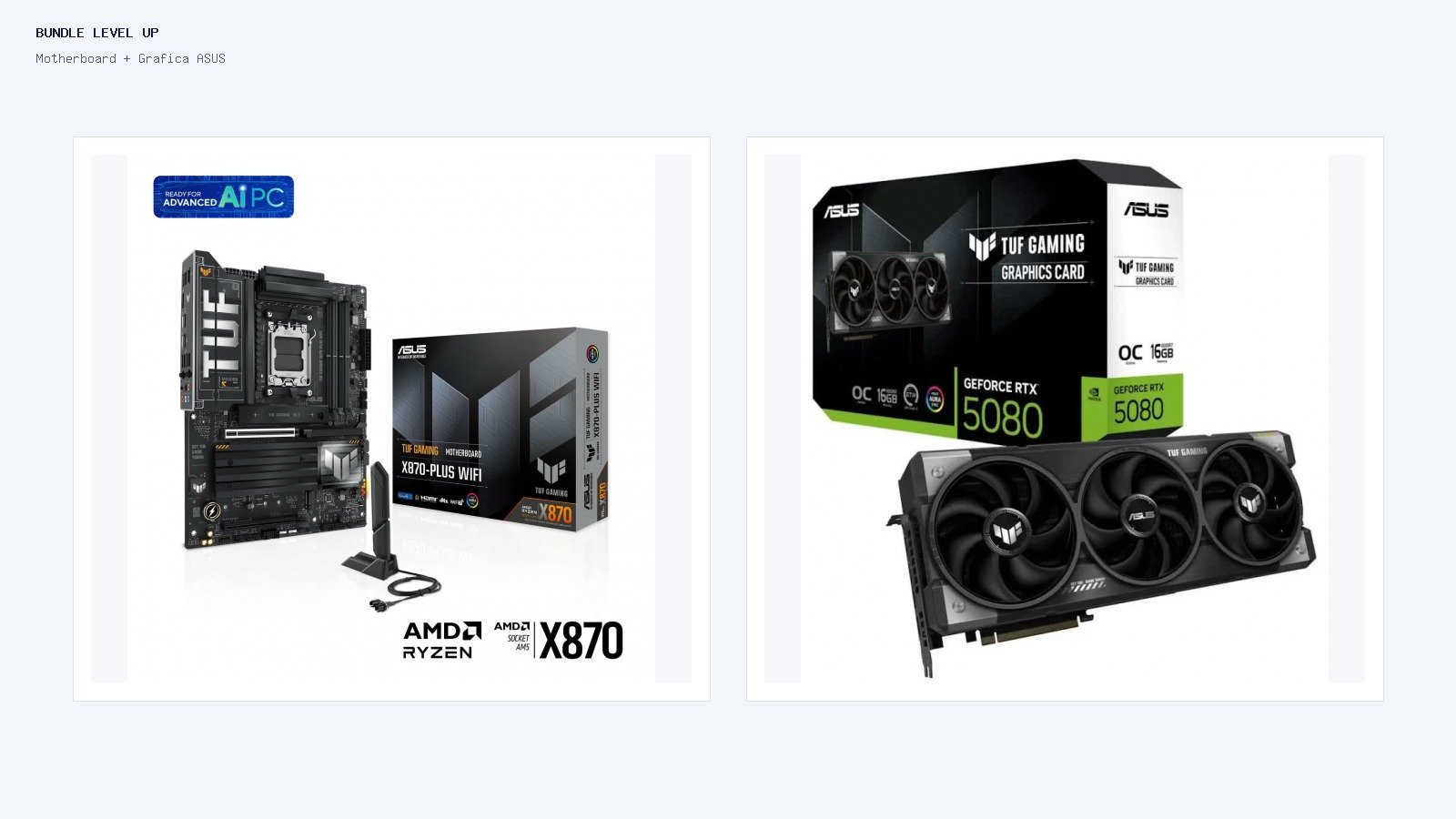 Inclui: • Motherboard ASUS TUF GAMING X870-PLUS WIFI AMD X870 Socket AM5 ATX (SKU 90MB1IU0-M0EAY0) • Placa Gráfica Asus TUF Gaming GeForce RTX 5080 16GB GDDR7 OC Edition (SKU 90YV0M30-M0NA00)
