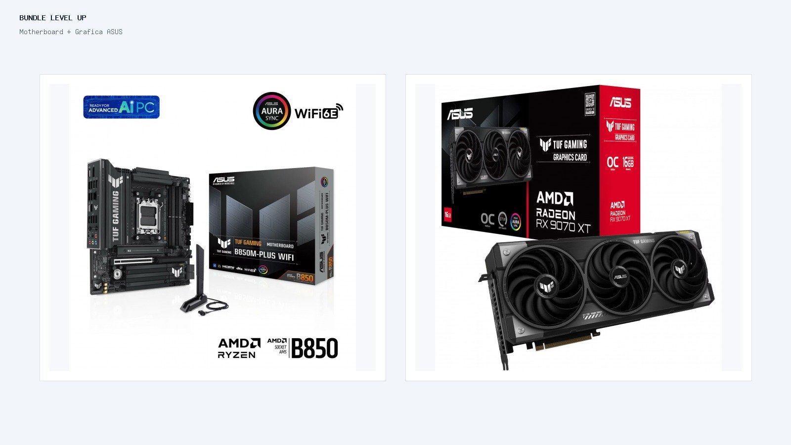 Inclui: • Motherboard Asus TUF GAMING B850M-PLUS WIFI Skt AM5 (SKU 90MB1IY0-M0EAY0) • Placa Gráfica Asus Radeon RX 9070 XT TUF Gaming OC 16GB GDDR6 (SKU 90YV0L70-M0NA00)