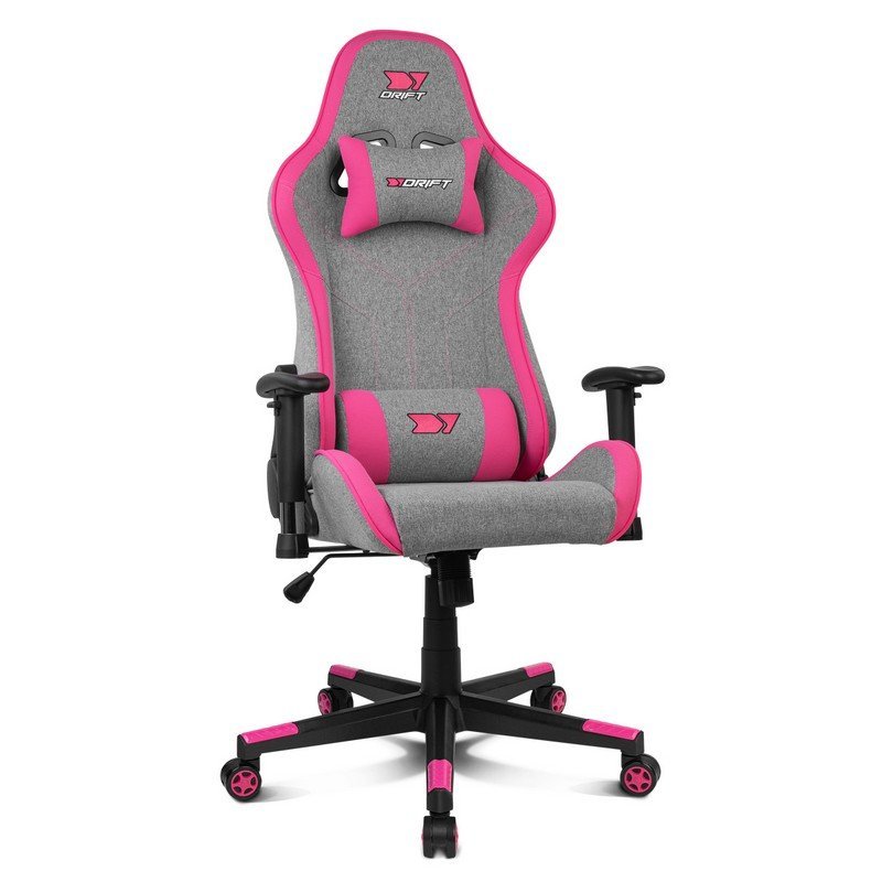 Conheça a cadeira gaming Drift DR90 Pro, disponível em quatro combinações de cores diferentes: Cinzento escuro e Preto; Cinzento e Branco; Cinzento e Turquesa; ou Cinzento e Rosa.