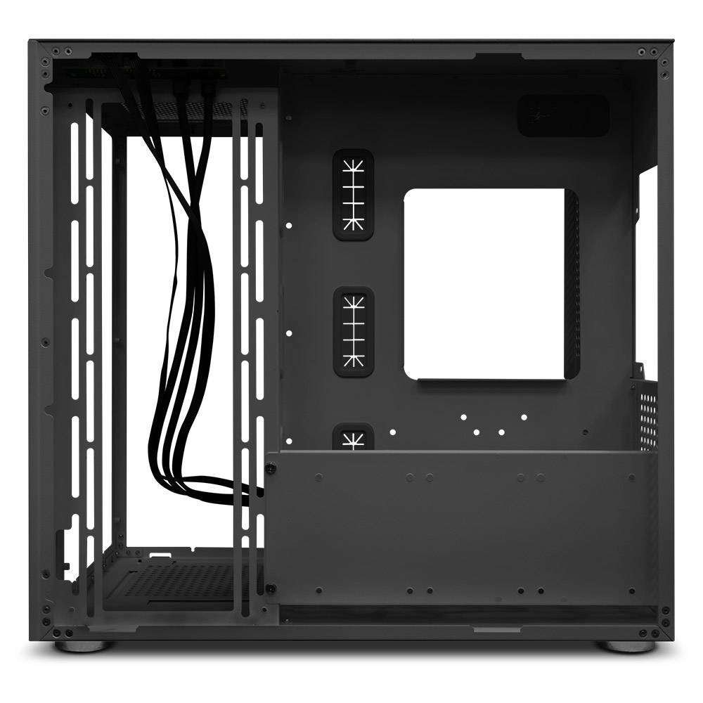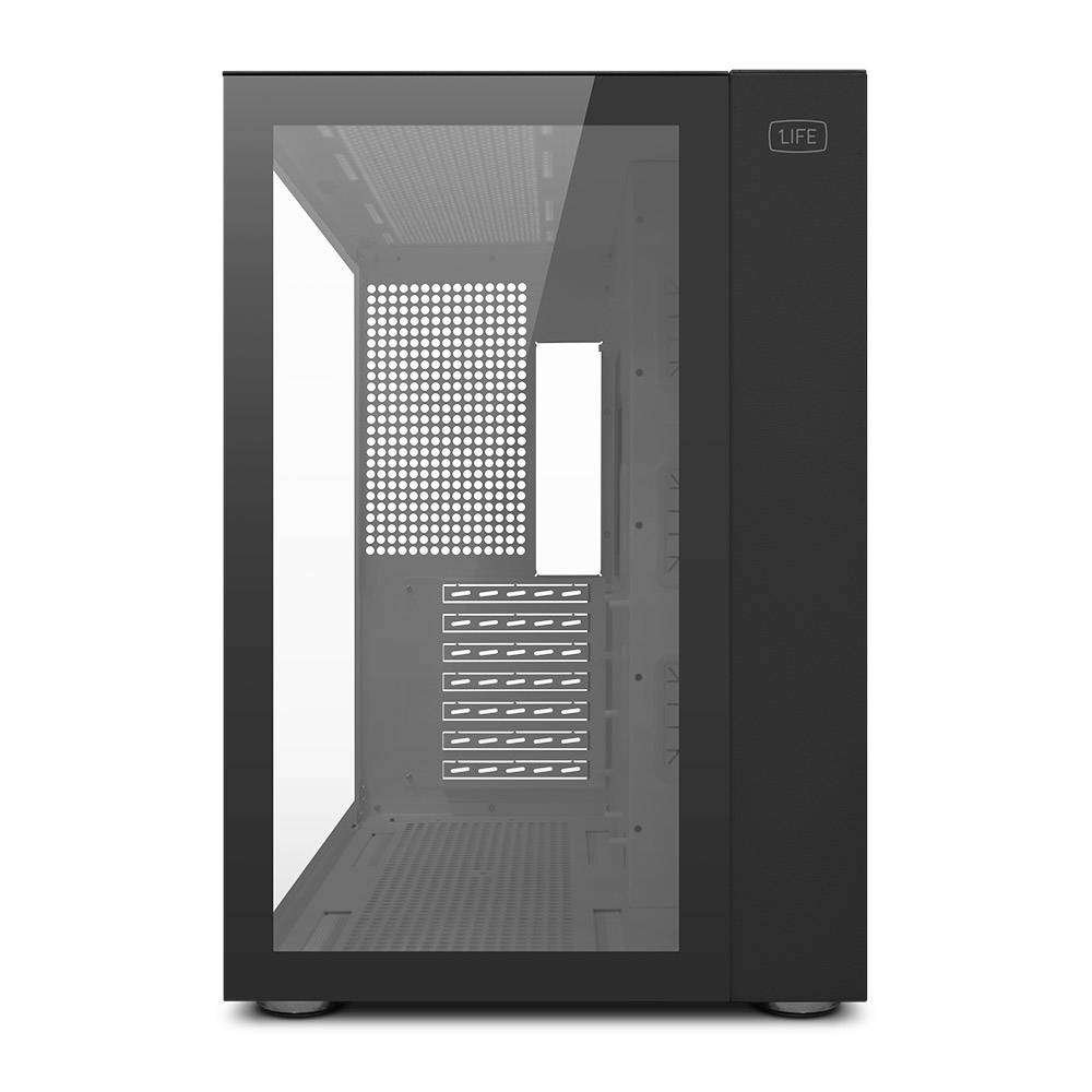 A 1Life c:vitra é uma caixa para PC ATX com estrutura de dupla câmara. Apresenta painéis frontal e lateral em vidro temperado.