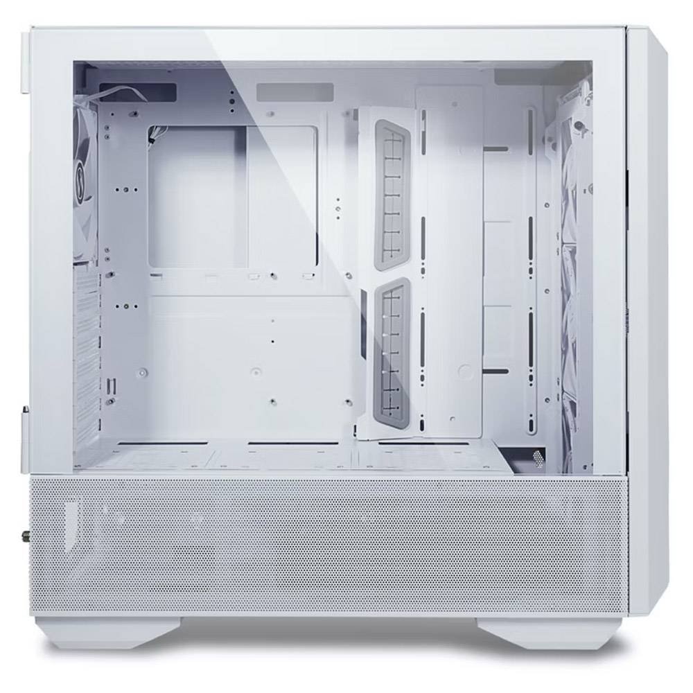 Os painéis laterais de vidro temperado com dobradiças oferecem uma visão desobstruída do interior, enquanto o painel inferior permite o acesso rápido à PSU e às drives de armazenamento.