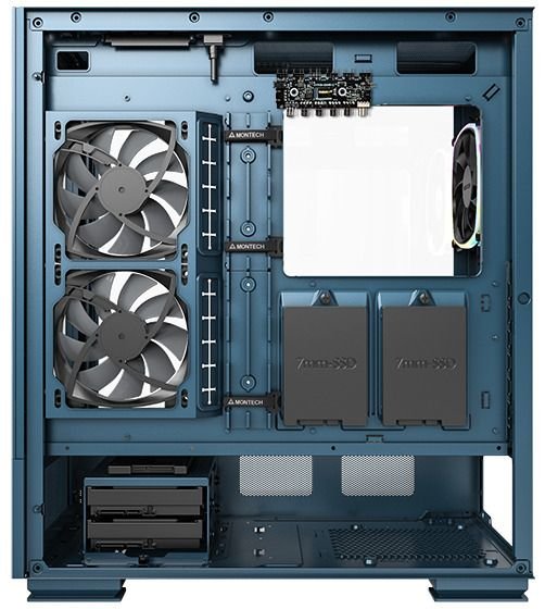 Graças ao painel frontal e lateral integrado, os utilizadores podem ver todo o interior à primeira vista. A mesh fina que cobre desde a parte inferior do painel frontal estende-se até à câmara da PSU com ventoinhas ARGB pré-instaladas que realçam a beleza desta obra-prima.