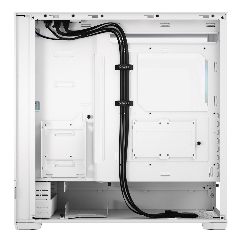 Três bandejas de armazenamento ultra-versáteis suportam uma unidade de 3.5″ e uma de 2.5″ simultaneamente. Está também incluído um suporte SSD dedicado para 2x 2.5″. Desfrute de múltiplos pontos de ancoragem, abraçadeiras de cabo pré-montadas e orifícios de passagem extra-grandes para um interior limpo.