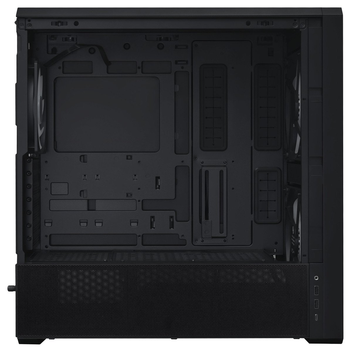 Equipado com ventiladores frontais e traseiros de alto desempenho, além de suportar opções de montagem adicionais na parte superior e inferior, este gabinete maximiza a dissipação de calor, assegurando desempenho estável e consistente.