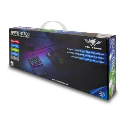 O Spirit of Gamer Xpert G700 é o mais recente conjunto de teclado RGB + rato para consolas! O Xpert K700 é um teclado para consola com luz de fundo (+8 efeitos). Permitirá que jogue na Switch, PS4, Xbox One e PS3.