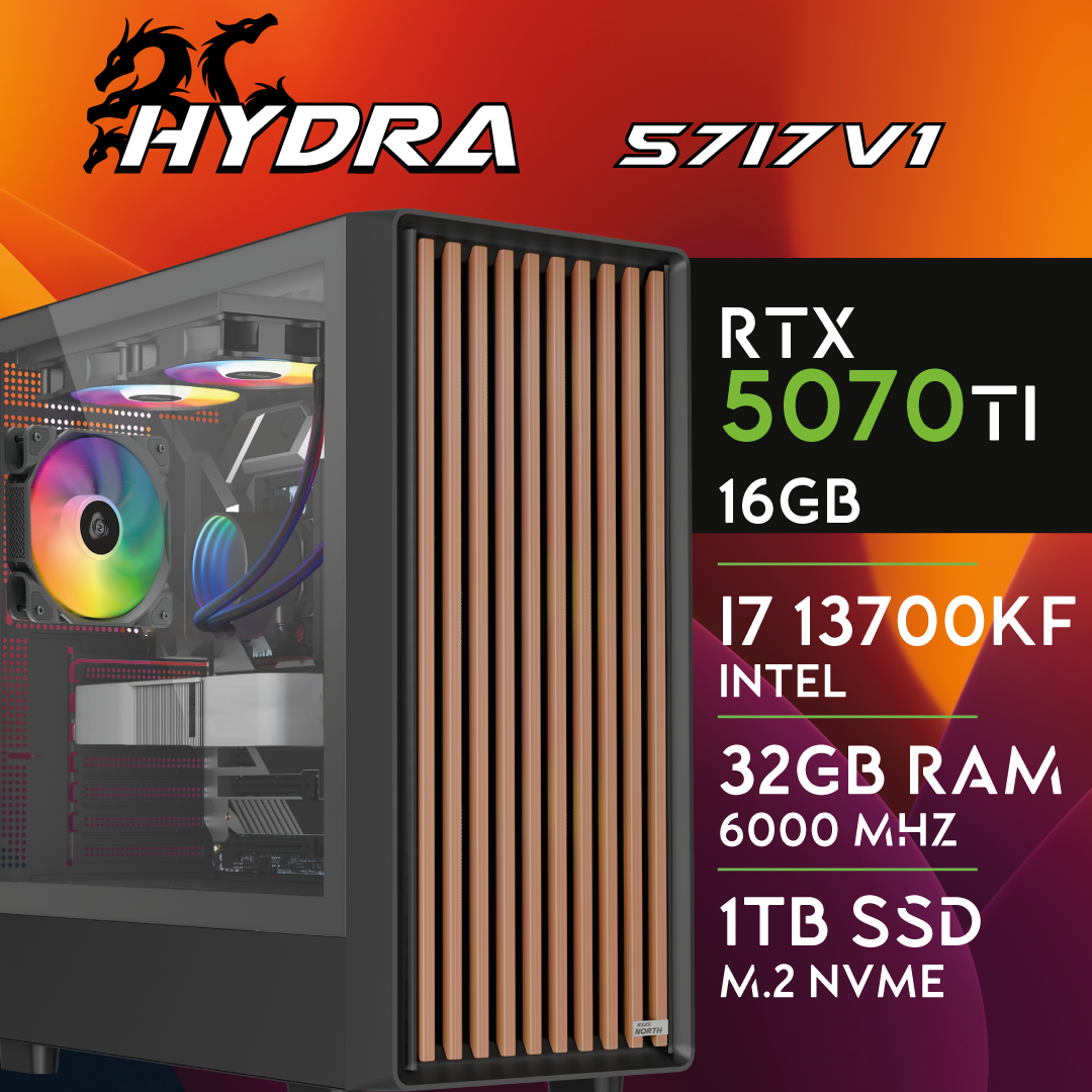 O HYDRA-57I7V1 combina a potência bruta do Intel Core™ i7 14700KF com a eficiência da RTX 5070Ti 16GB, garantindo desempenho topo de gama para gaming competitivo, criação de conteúdo e tarefas pesadas.