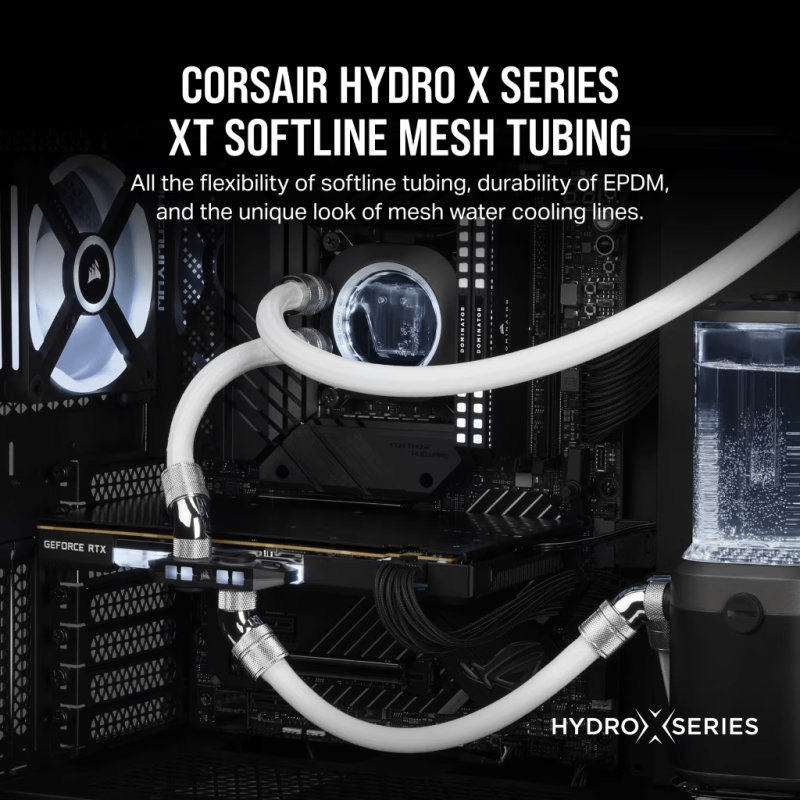 Melhore o seu loop com os tubos CORSAIR Hydro X Series XT Softline Mesh Tubing, feitos de borracha EPDM durável e cobertos com um revestimento de malha exclusivo que acrescenta um aspeto distinto e robusto ao seu equipamento.