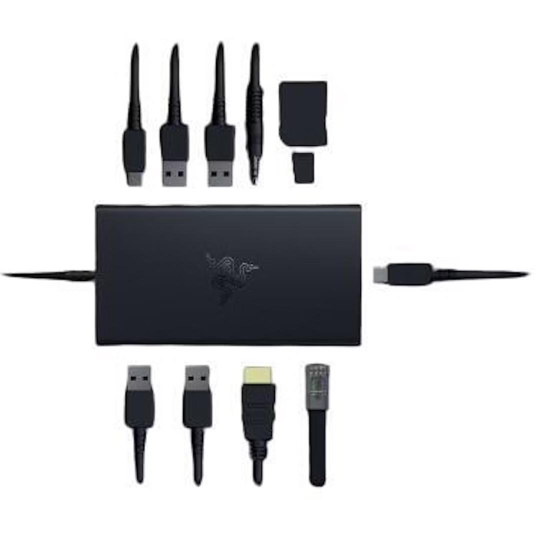 Razer USB-C Dock, Com fios, USB 3.2 Gen 1 (3.1 Gen 1) Type-C, 85 W, 10,100,1000 Mbit/s, Preto, MicroSD (TransFlash), SD