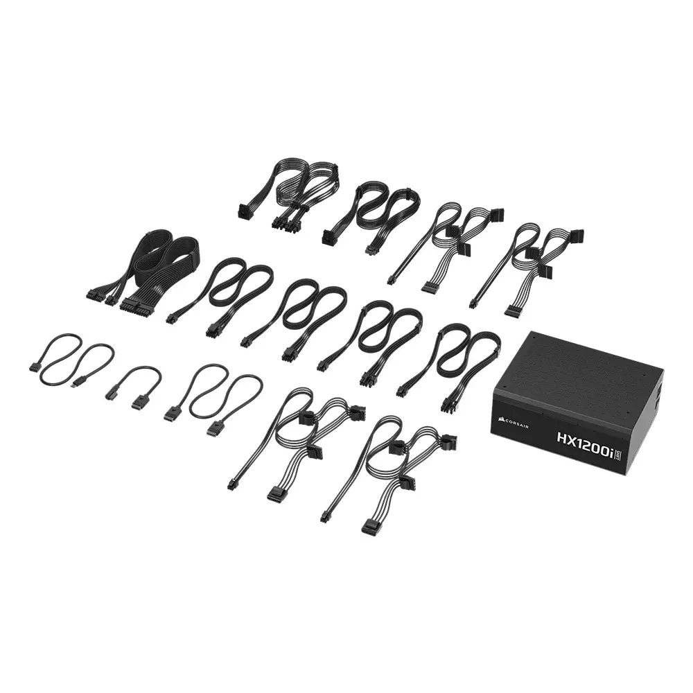 A HX1200i SHIFT é uma montra da inovação da CORSAIR, com um hub de sistema iCUE LINK integrado e eficiência certificada Cybenetics Platinum com conectores SHIFT montados lateralmente. Todas as funcionalidades foram adicionadas para facilitar a configuração de um PC, incluindo os seus conectores totalmente modulares, o seu kit de cabos em PVC com cabos tipo 5 e um cabo 12V-2×6 nativo para as mais recentes GPUs. Os condensadores japoneses de 105 °C, juntamente com uma ventoinha com rolamento de fluido dinâmico (FDB) de 140 mm com modo Zero RPM, garantem um funcionamento silencioso e fiável. Tem certificação ATX 3.1 e está preparada para PCIe 5.1, e inclui uma garantia de dez anos. Com controlo digital total e suporte iCUE LINK, é mais do que uma fonte de alimentação, é um centro de comando.