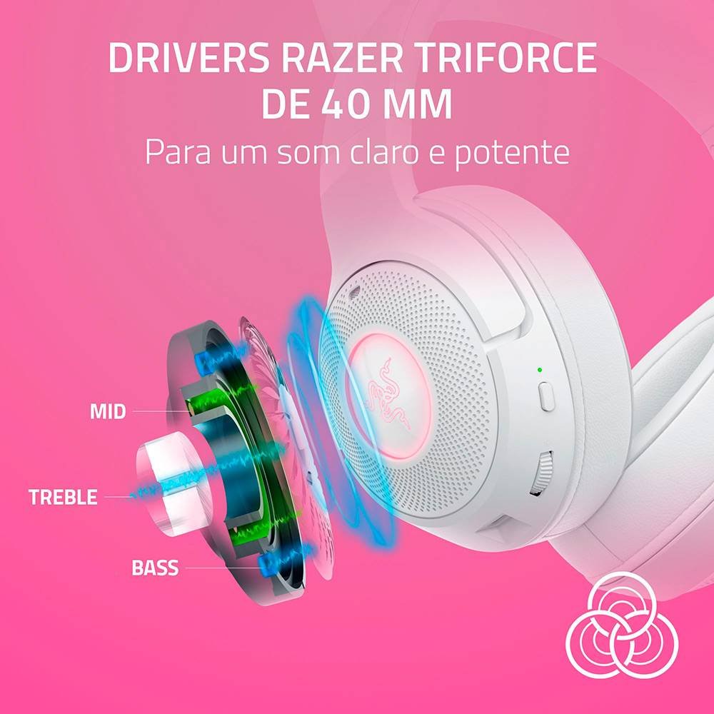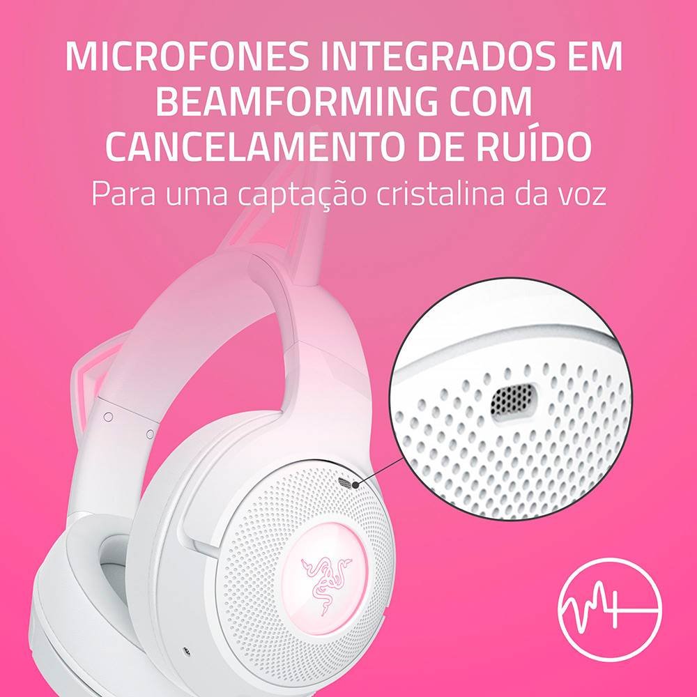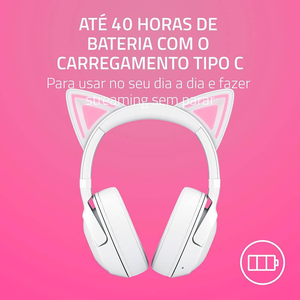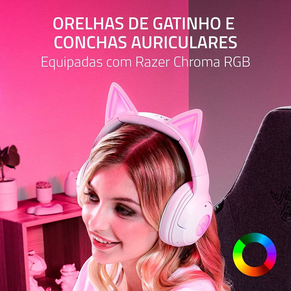 Liberte o seu estilo de gatinho assassino em qualquer lugar com o Razer Kraken Kitty V2 BT – um Headset Bluetooth sem fios para jogos e transmissão IRL. Equipados com Razer Chroma™ RGB, mostre a sua personalidade única para todos verem, enquanto leva a sua paixão para o próximo nível com um conjunto completo de funcionalidades melhoradas.