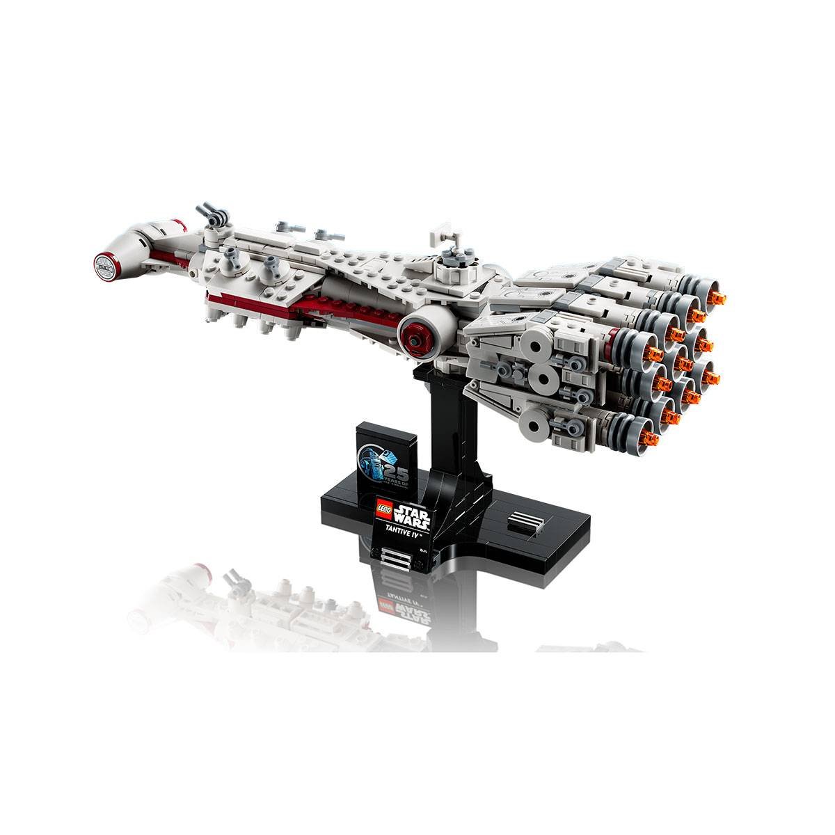 Construa novamente a emoção que sentiu ao assistir à cena inicial de Star Wars: Uma Nova Esperança com este modelo com peças LEGO® da nave Tantive IV. Sinta o poder da força criativa enquanto capta os detalhes imediatamente reconhecíveis de uma nave icónica, vista pela primeira vez a ser perseguida por uma Star Destroyer. Coloque o veículo Star Wars™ no suporte para construir, adicione a placa identificadora e a peça comemorativa do 25.º aniversário de LEGO Star Wars para completar uma peça que chama a atenção.