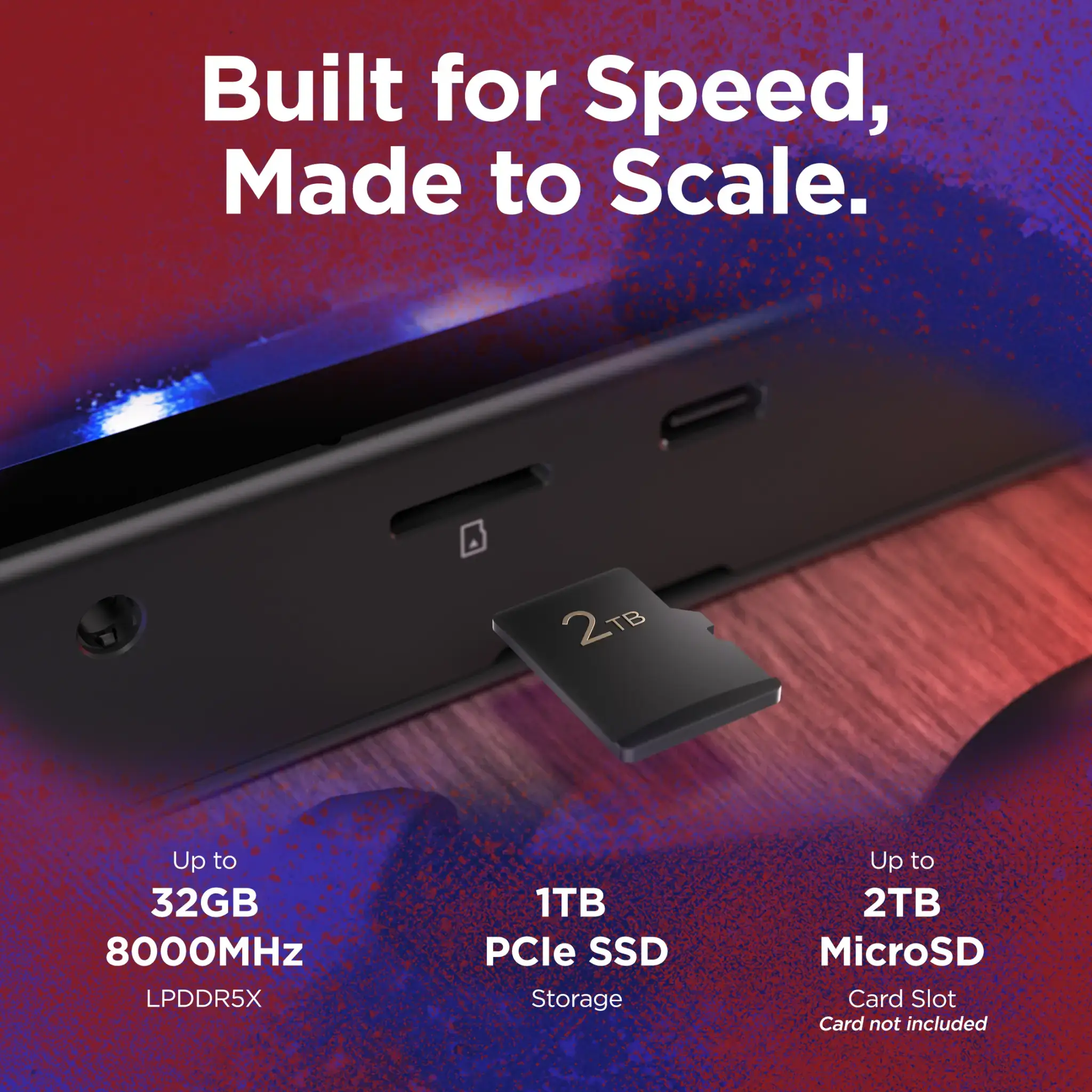 A Legion Go 2 está equipada com muita RAM LPDDR5X de 7500 MHz e um SSD PCIe para manter os seus carregamentos rápidos mesmo no calor da batalha. Aumente este armazenamento com uma expansão de até 2 TB via cartão microSD para uma enorme biblioteca de jogos que pode levar consigo.