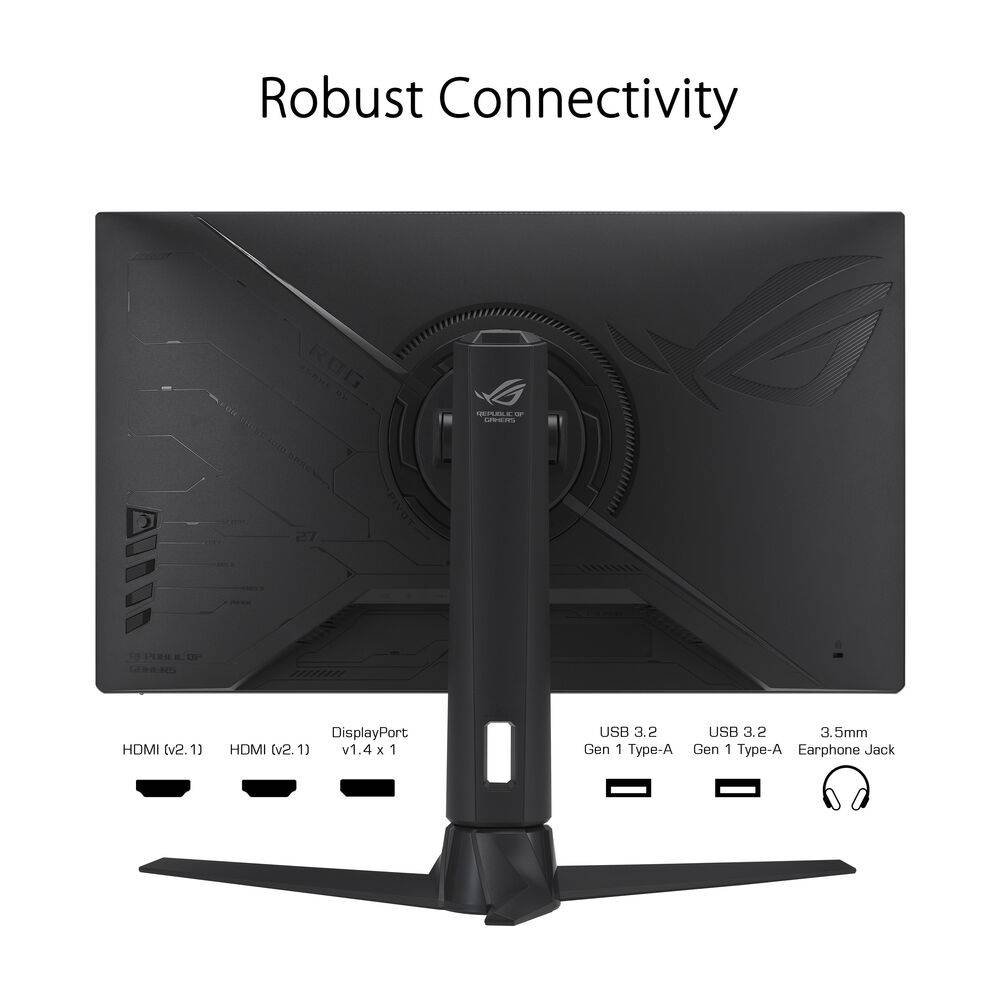 Monitor Gaming ROG Strix XG27AQMR: 27 polegadas, 2K QHD (2560×1440), Fast IPS, 300Hz (144+Hz), 1ms GTG, Compatível com G-Sync, Variable Overdrive, ELMB Sync, DisplayHDR 600. O painel WQHD (2560×1440) oferece 77% mais espaço no ecrã do que o Full HD padrão (1920 × 1080 ) exibe.