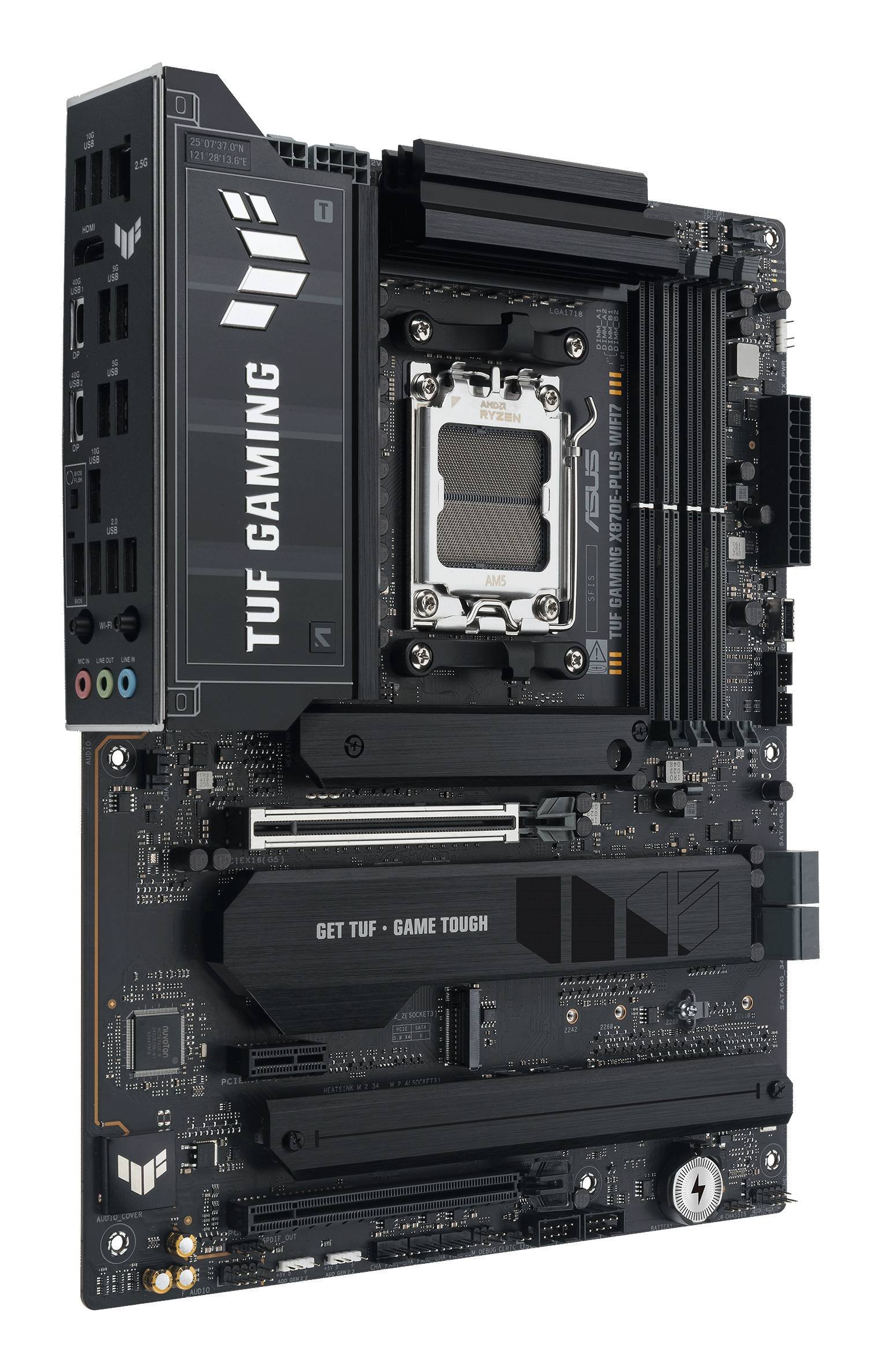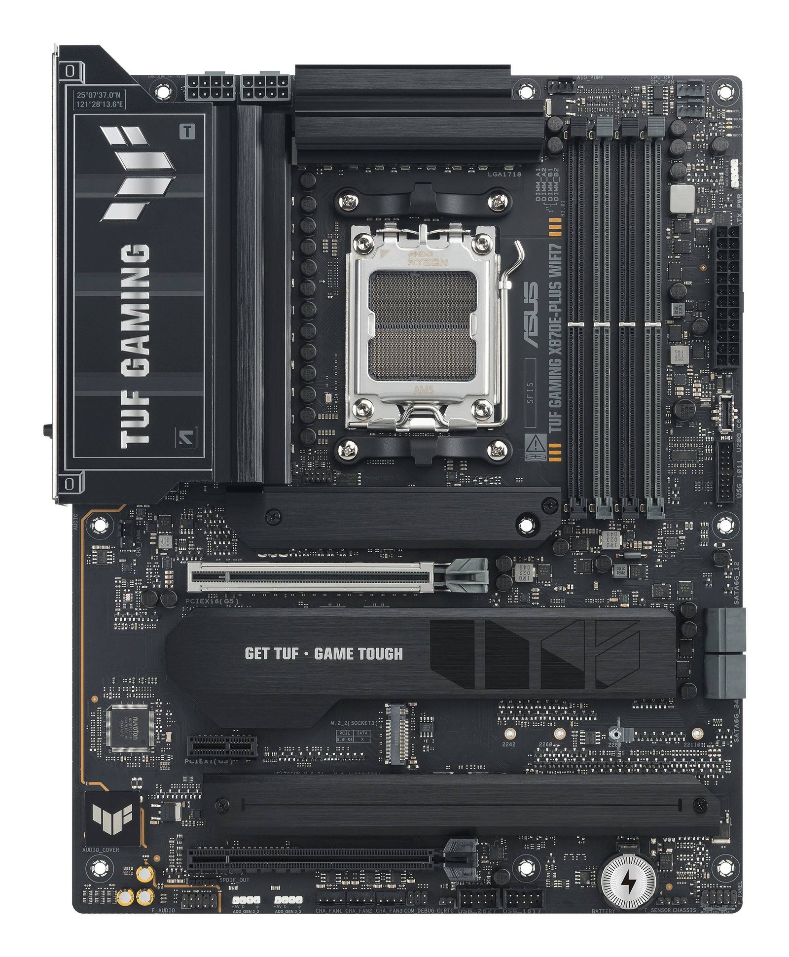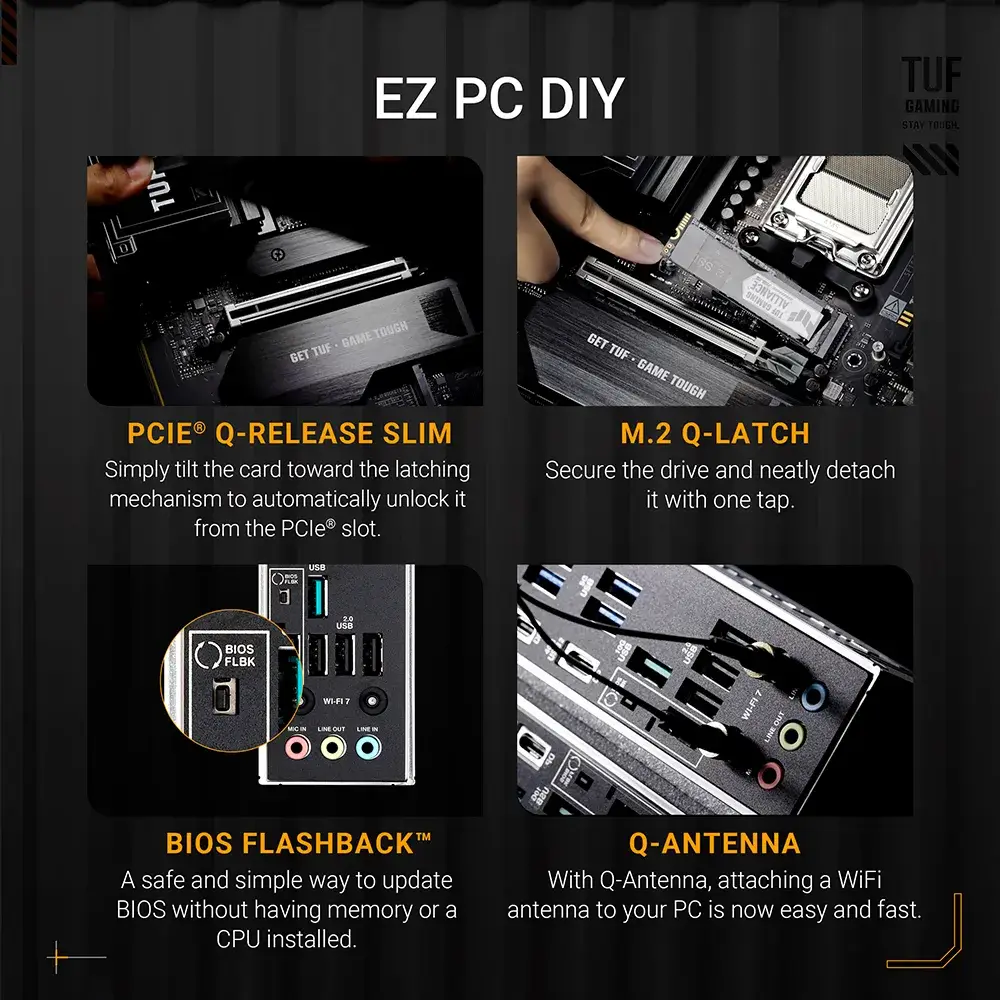 A ASUS TUF GAMING X870E-PLUS WIFI7 reúne em todos os elementos essenciais dos mais recentes processadores AMD Ryzen™ e combina-os com funcionalidades prontas para jogos e durabilidade comprovada. Concebida com componentes de nível militar, uma solução de alimentação melhorada e um sistema de arrefecimento abrangente, esta motherboard vai além das expectativas com um desempenho sólido e estável para maratonas de jogos. As motherboards TUF GAMING também passam por rigorosos testes de resistência para garantir que possam lidar com condições em que outras podem falhar. Esta plataforma fornece a potência e a conectividade que as aplicações avançadas de IA para PC exigem.
