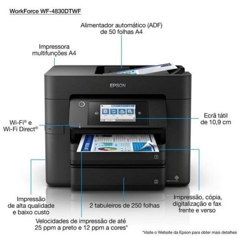 | Saída da primeira página a preto (A4, pronta) | Em apenas 19 seg. |