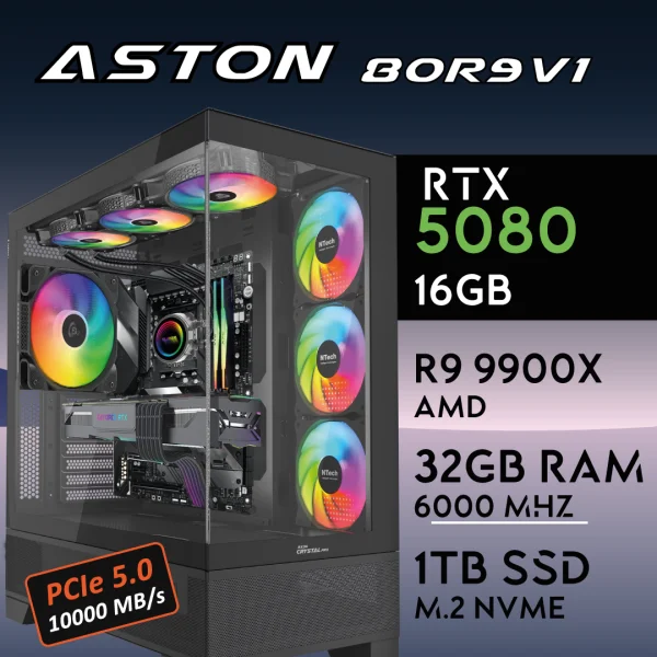 PC Gaming ASTON-80R9V1 – R9 9900X | RTX5080 16GB | 32GB | M.2 1TB