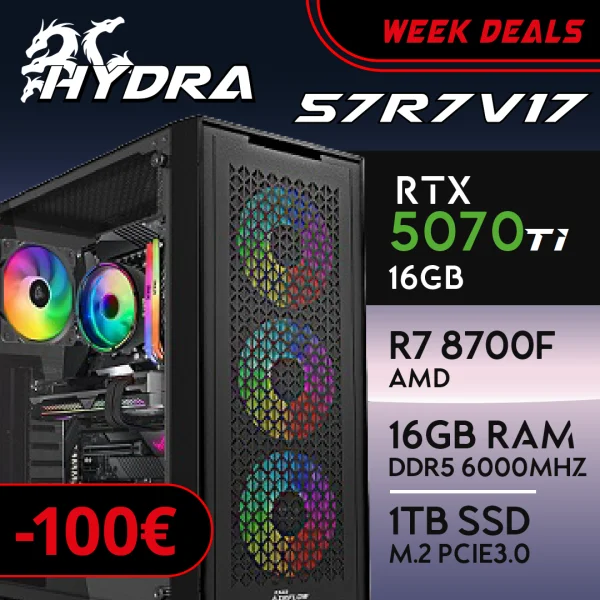 PC Gaming HYDRA-57R7V17 – R7 8700F | RTX5070Ti 16GB | 16GB | M.2 1TB