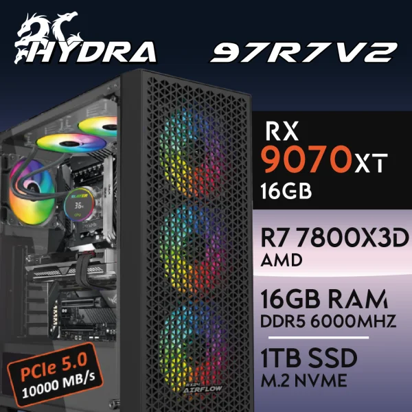 PC Gaming HYDRA-97R7V2 – R7 7800X3D | RX9070XT 16GB | 16GB | M.2 1TB