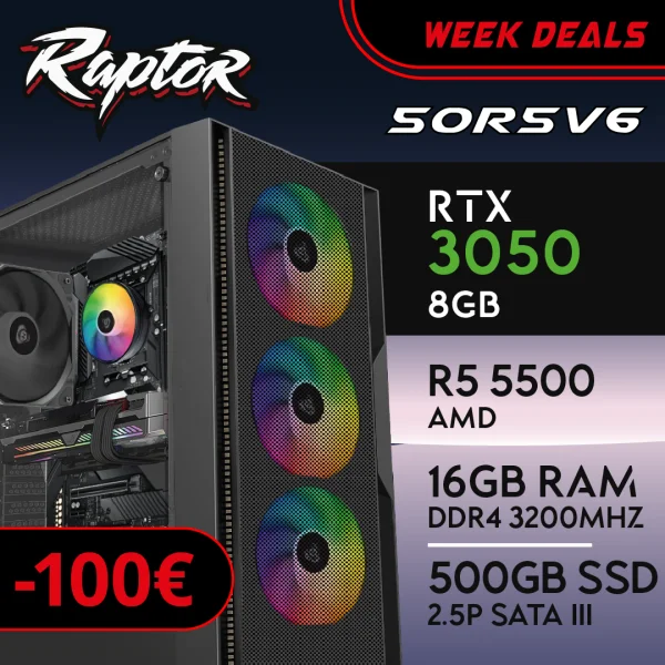 PC Gaming RAPTOR-50R5V6 – R5 5500 | RTX3050 8GB | 16GB | SSD 500GB