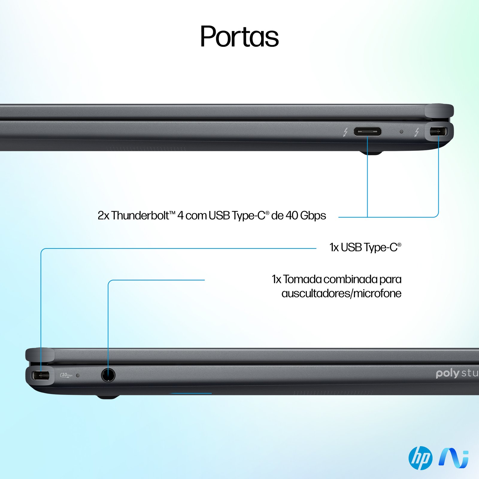 • Áudio: DTS:X® Ultra, 4 altifalantes, HP Audio Boost, Poly Studio