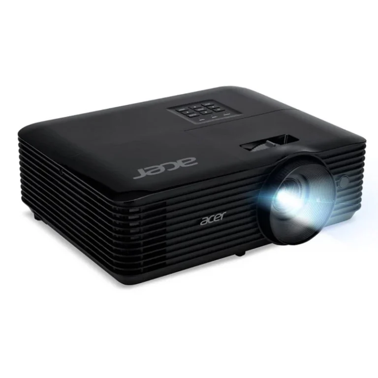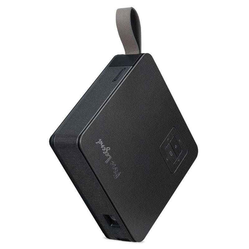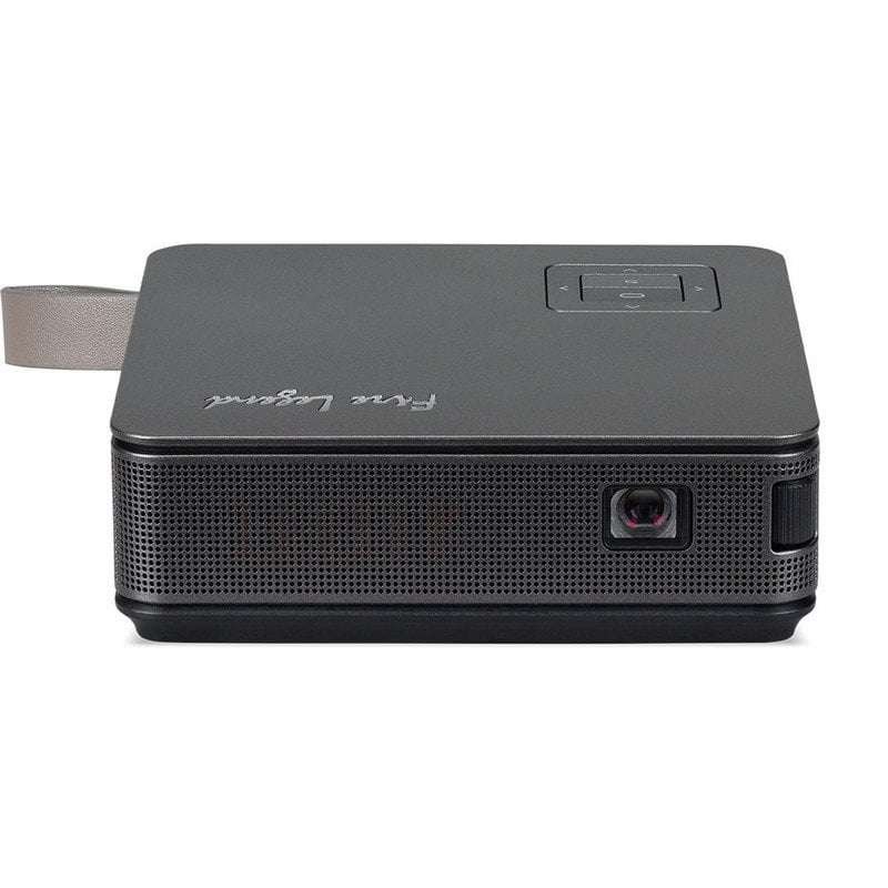 Projetor inteligente portátil do tamanho da palma da mão Acer Aopen PV12a, com iluminação LED superior e design de suporte dobrável.