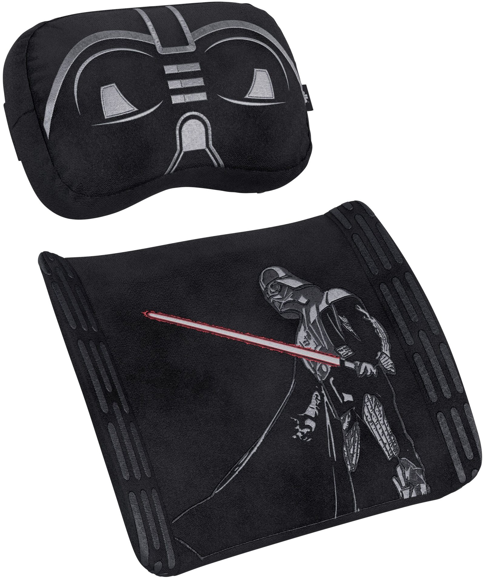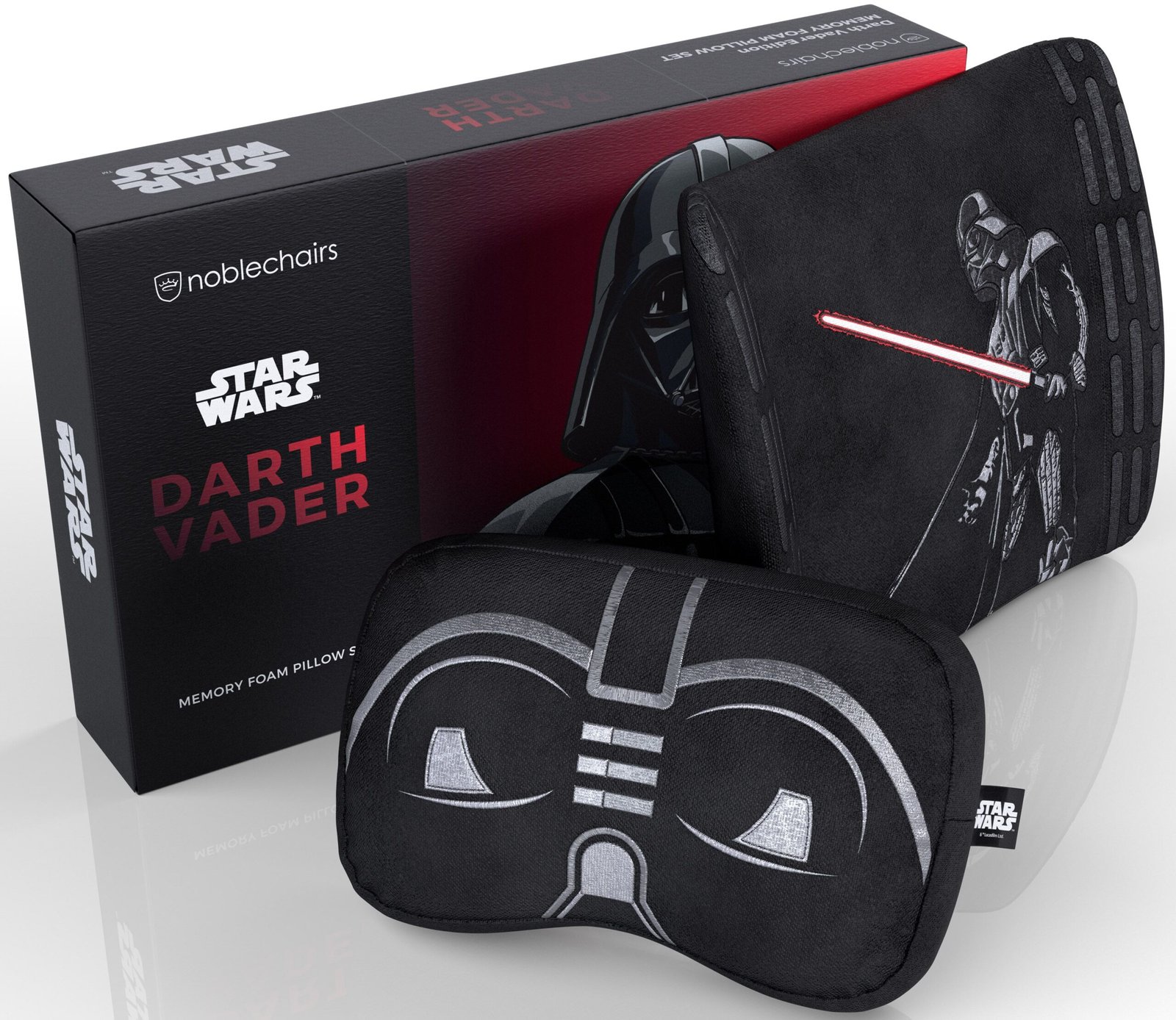 Até mesmo um Senhor das Trevas do Sith merece o conforto que só os nossos conjuntos de almofadas noblechair de primeira qualidade trazem. Portanto, abrace Set de almofadas de Espuma de Memória da noblechair DARTH VADER™ Edition, use-a em qualquer uma das séries noblechair, e sinta o poder fluir através de si. Ergonomia e conforto ilimitados, muitos considerariam antinatural, estão à sua disposição. O design é inspirado pelo icónico vilão trágico do universo STAR WARS e será o seu guia em cada aventura. A almofada do pescoço tem o seu estilo semelhante ao capacete de Vader, enquanto a almofada lombar apresenta uma representação impressionante do Senhor Sith com o seu sabre de luz ativado.